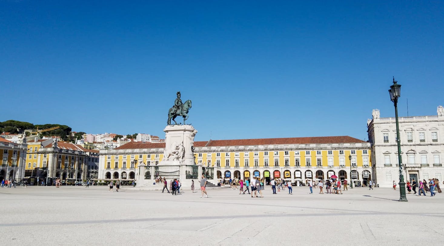 Once you make your way back down from the castle and are looking for a place to grab a drink or bite to eat or a - free - place to walk around (or if you’re like us and just enjoy places to leisurely walk around), you have to check out Commerce Square! It is a massive open plaza right on the water that provides spectacular views of the coast, those drinks or bites to eat you're looking for with restaurants seeping onto the plaza, and there is also a massive tower that covers a 'tunnel' that looks like an entry point into the bustling city of Lisbon, Portugal.