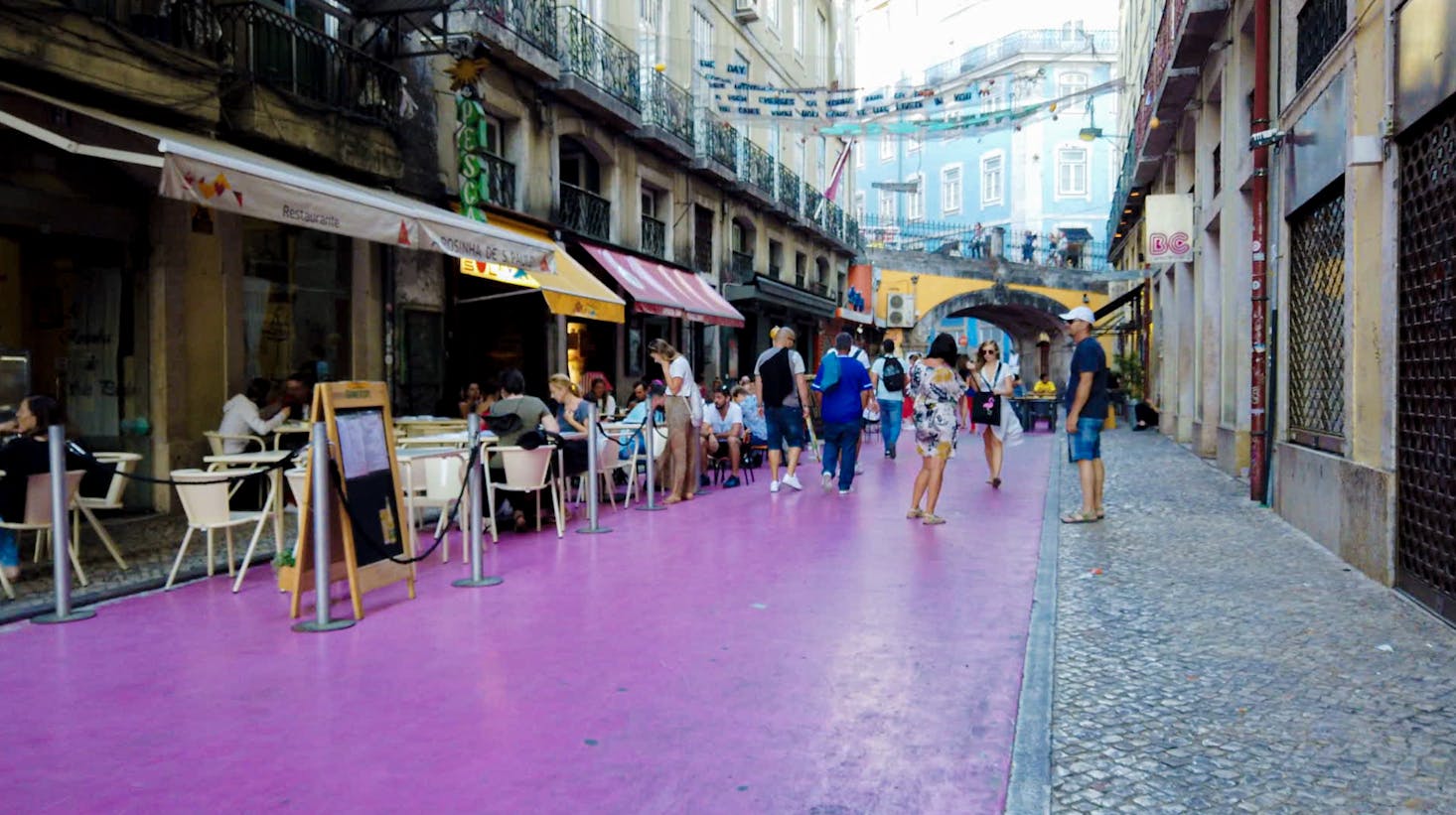 To walk off your indulgences from either Commerce Square or Mercado da Ribeira (or both!), head over to Lisbon's famous Pink Street. (Yes - it's actually pink)! Once a very seedy part of Lisbon that we wouldn't have gone to let alone recommended not too long ago, the city has transformed this street into a lively and inviting atmosphere where you can enjoy a nice meal at any point during the day and then make your way back there in the evening for a fun night filled with great beverages. Also very grammable!