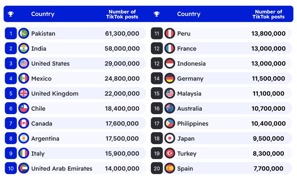 The most popular countries on TikTok
