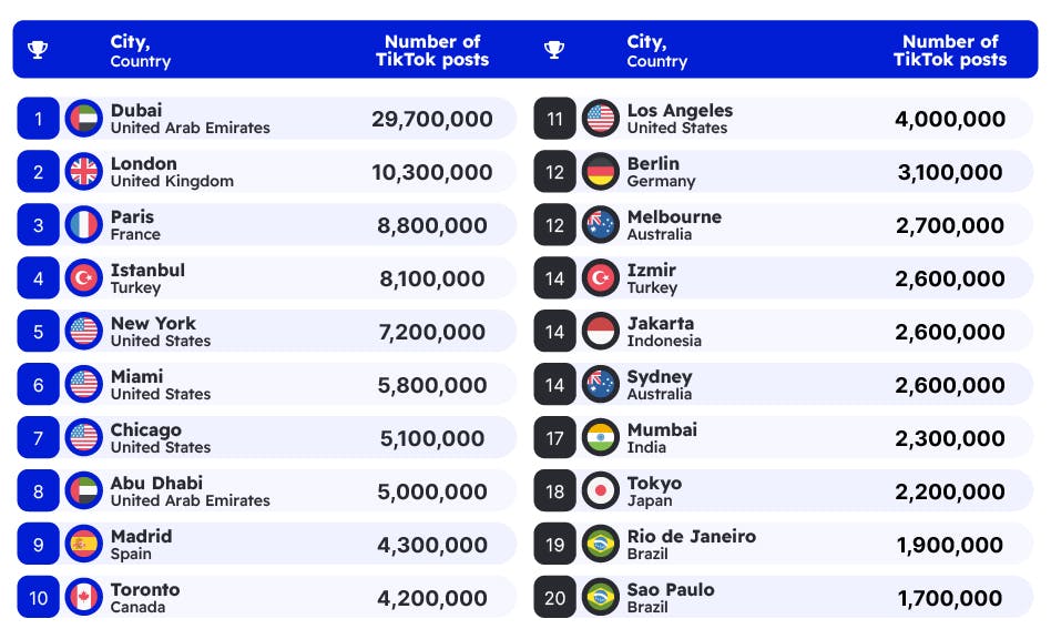 The most popular cities on TikTok