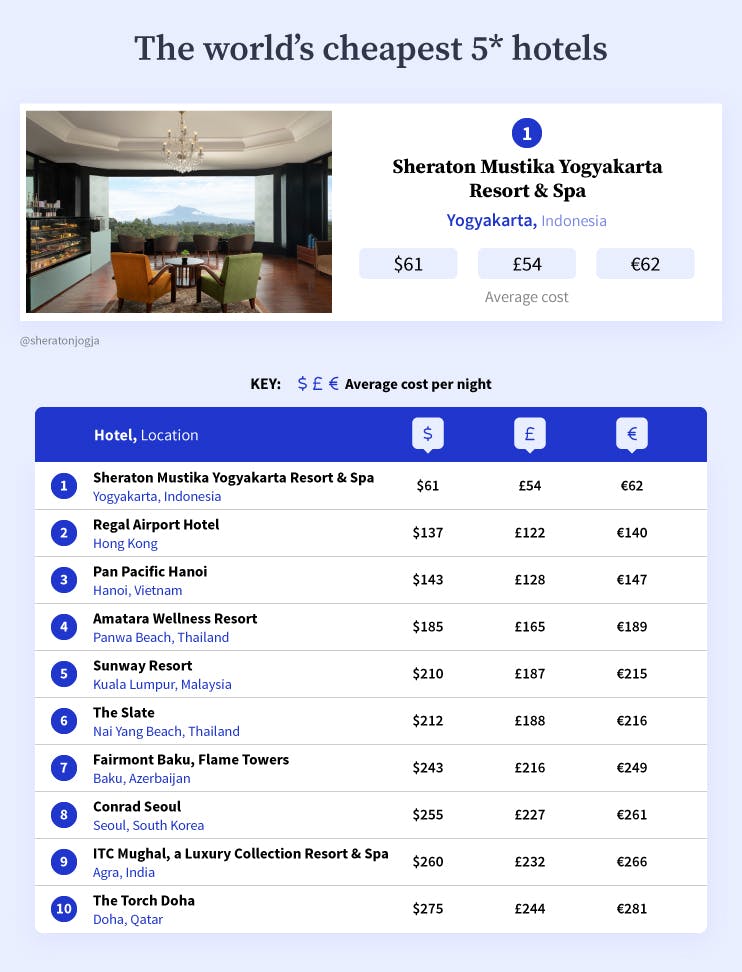*The infographics showcase rounded-up hotel prices to the nearest 1 (£/€/$).