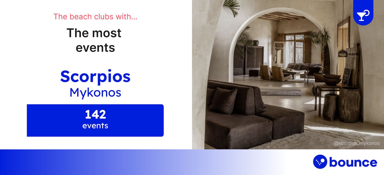Mykonos’s Scorpios is up next. The beach club scores well across the board, placing in the top five for three of the five factors in our index. It ranks fourth for Instagram and TikTok posts, with 54,285 and 1,761 posts, respectively. Scorpios also places fifth for Google searches at 673,700 over the last year.