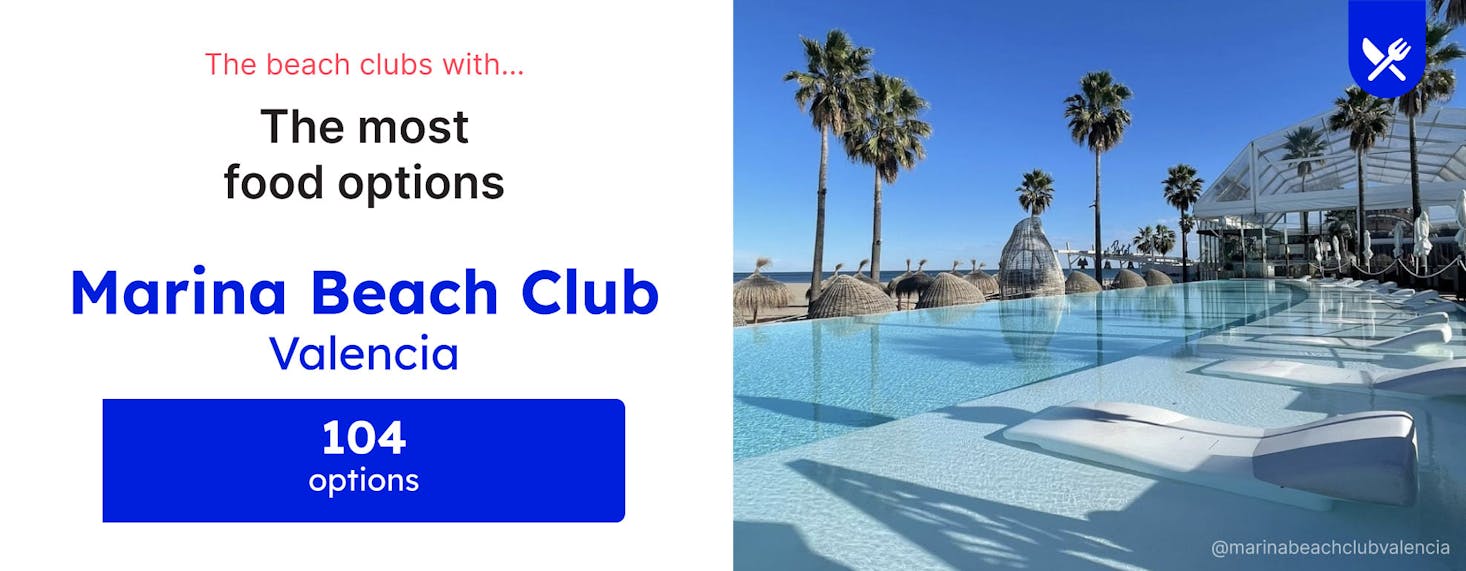 The most food options - Marina Beach Club, Valencia (104 options)