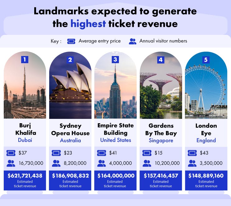 Landmarks expected to generate the highest ticket revenue