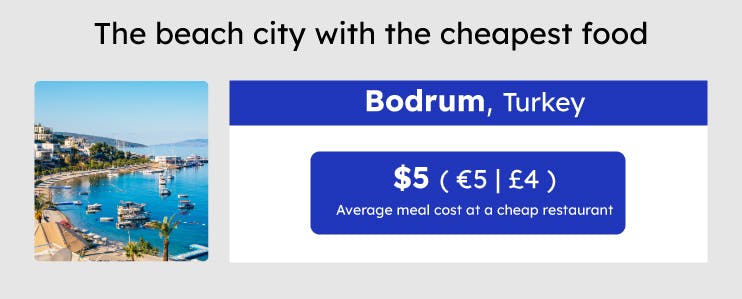 The beach city with the cheapest food | Bodrum, Turkey: $5, €5, £4 for a meal