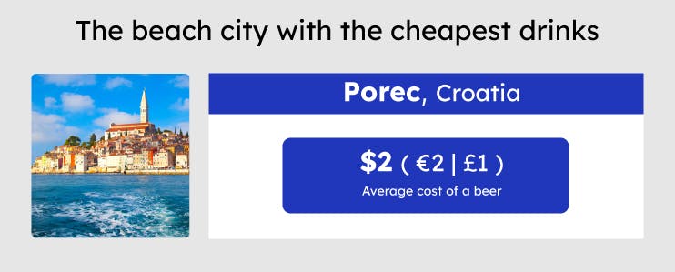 The beach city with the cheapest drinks | Porec, Croatia: $2, €2, £1 for a beer