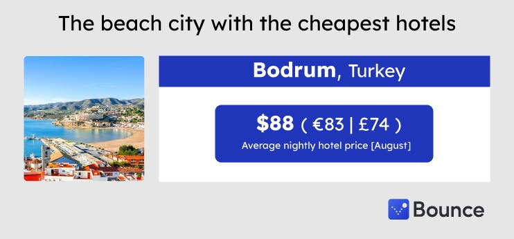 The beach city with the cheapest hotels | Bodrum, Turkey: $88, €83, £74 for one night