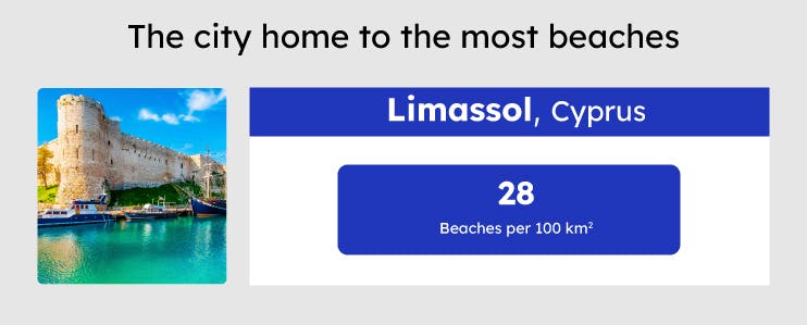 The city home to the most beaches | Limassol, Cyprus: 28 beaches per 100 km2