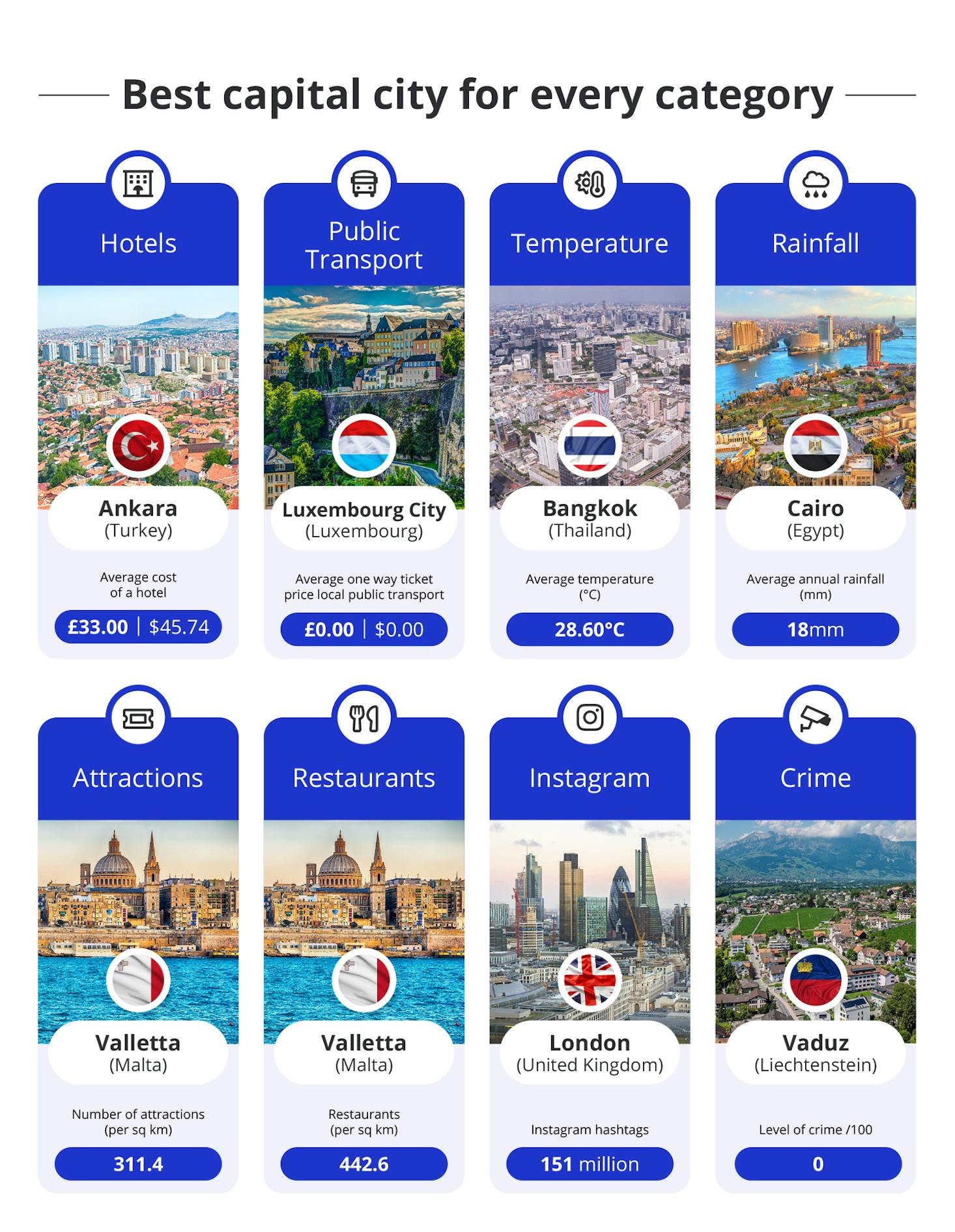 Often one of the most popular areas of a country to visit is the capital city, due to it being a hub for tourist activities, sightseeing, and amenities within a nation. To determine which of the world’s capital cities is the best to visit for a holiday, numerous different factors have been taken into consideration to create a ranking for 69 of the most developed capitals in the world.