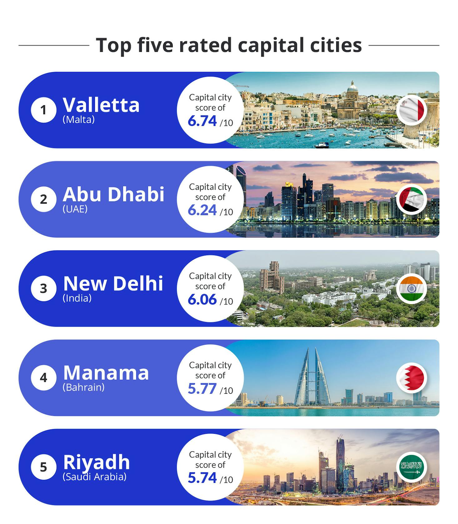 5 - Riyadh (Saudi Arabia), capital city score of 5.74/10: