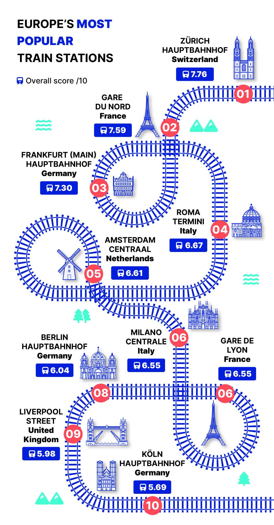 To find out, Bounce has analyzed Europe’s 30 busiest stations on factors such as passenger reviews, number of platforms, and social media popularity.