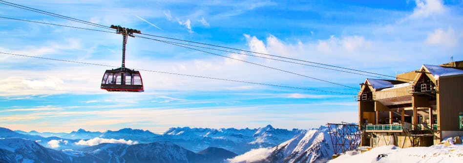 For breathtaking views and a bit of a thrill, ride the Téléphérique de l’Aiguille du Midi in Chamonix, France. Ascending to over 12,600 feet, this cable car lets you see sights across France, Italy, and Switzerland. Once at the top, advanced skiers can test their limits on the Vallée Blanche — a 20km off-piste run surrounded by glacial scenery.