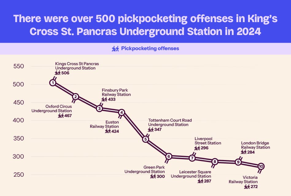 There were over 500 pickpocketing offenses in King’s Cross St. Pancras Underground Station in 2024