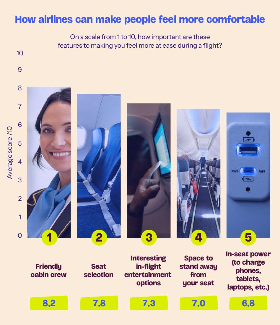 Instead, friendly cabin crew rank highest among passenger comfort preferences, with an 8.2 average rating. Seat selection follows closely at 7.8, showing that control over where you can sit is nearly as important as service quality.