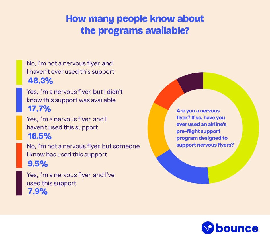 Nearly half of the respondents (48.3%) say they’re not nervous flyers and haven’t used this support, but almost one in 10 (9.5%) know someone who has completed the program.