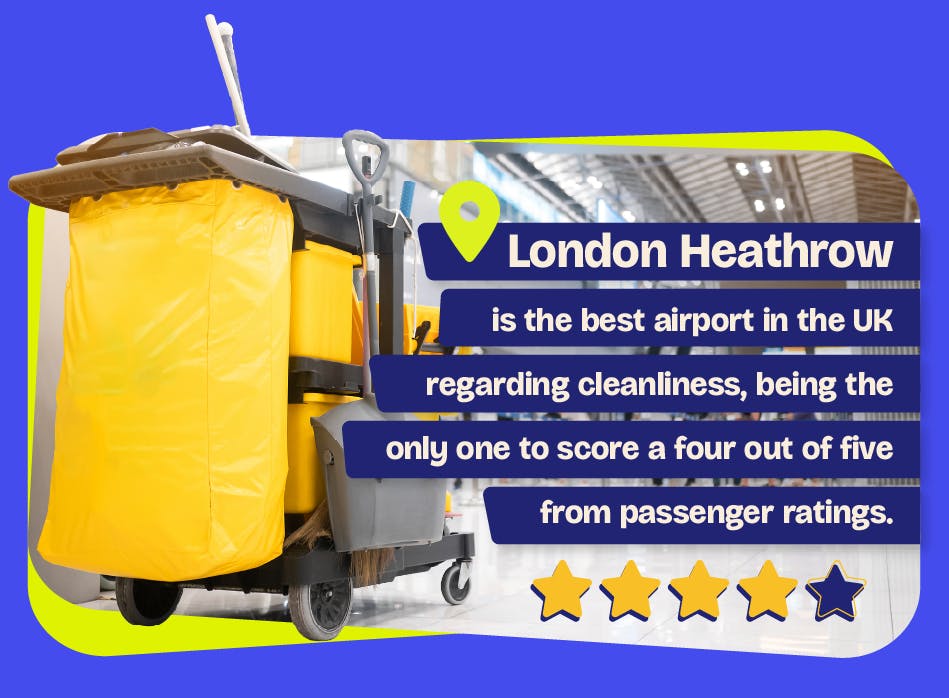 London Heathrow is the best airport in the UK regarding cleanliness, being the only one to score a four out of five from passenger ratings. No airport scored five out of five, with the majority earning a rating of three.