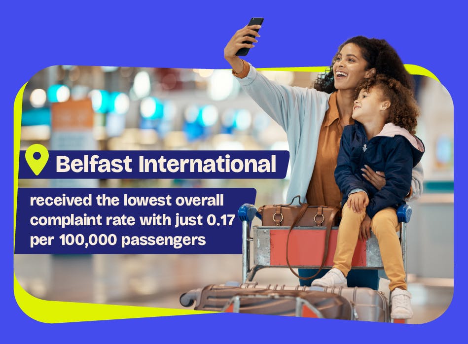 Interestingly, Belfast’s other airport, Belfast International, received the lowest overall complaint rate, just 0.17 per 100,000 passengers, so passengers may find a smoother experience flying from here instead.