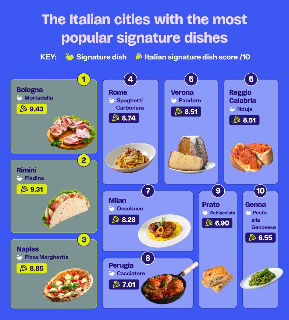 The Italian cities with the most popular signature dishes