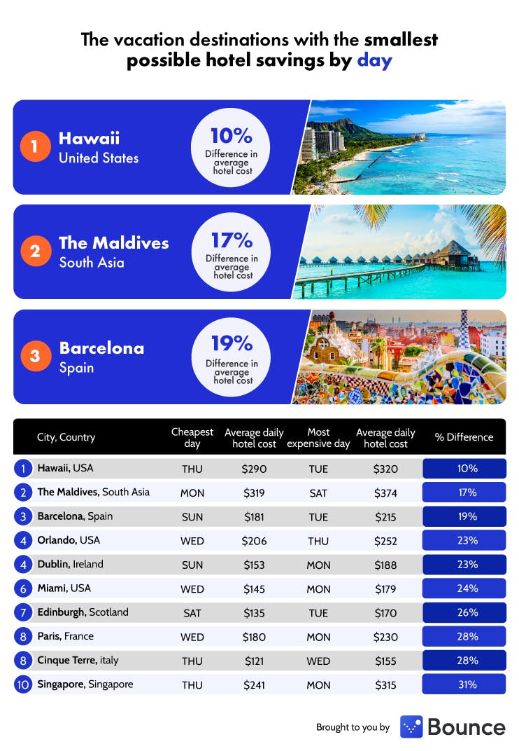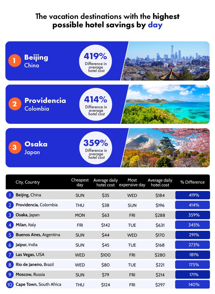 The Vacation Destinations with the Highest Possible Hotel Savings by Day