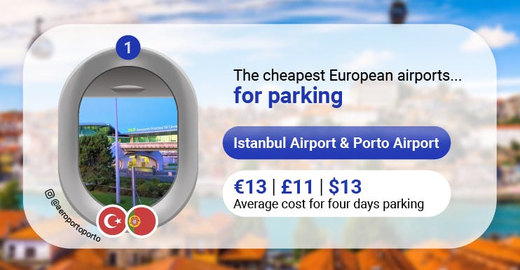 Istanbul Airport and Porto Airport are the cheapest airports in Europe for parking, with an average four-day stay costing €13 (£11 | $13) on the day. This is the average cost of leaving your car parked for four days at a terminal car park without pre-booking, using pay-on-the-day rates.