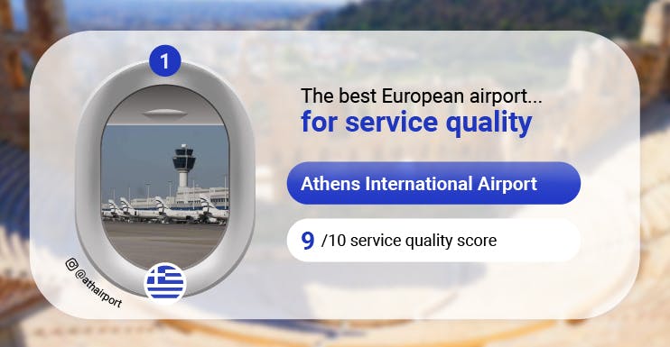 Athens International Airport has the most superior service quality, scoring 9 out of 10 in AirHelp’s Global Airport Ranking. The score was calculated from the result of an in-depth review from passengers around the globe. Passengers ranked the airport on its customer service, queue times, and airport cleanliness.