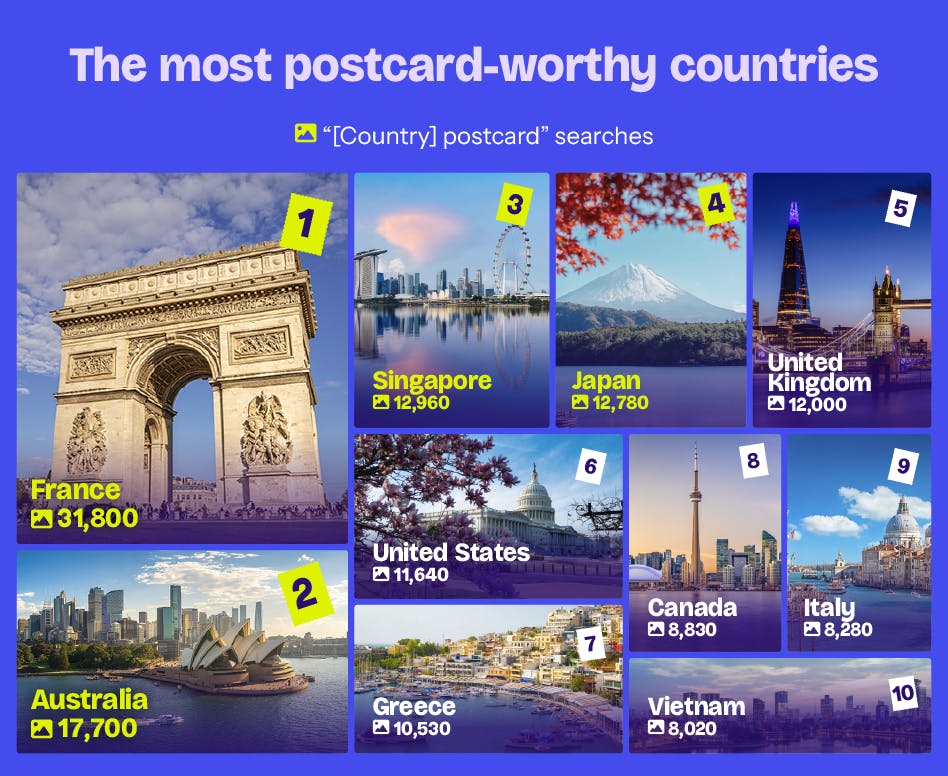 In this research, we’ve highlighted postcard-worthy destinations worldwide, using insights from searches and survey data to explore how the postcard industry is evolving in 2025.